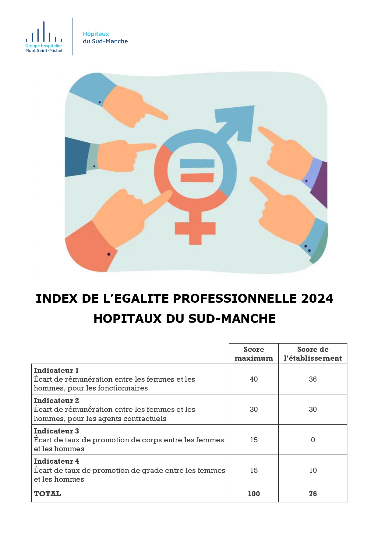 Index de l’égalité professionnelle 2024 des Hôpitaux du Sud-Manche